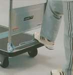 使い手の声を製品にという発想を大切にしながら、人間工学やユニバーサルデザインに基づく視点で使い慣れたハンドトラックのハンドルでエルゴノミックなフォルムを取り入れました。片手使用時から身体の大きさ、使い手による持ち方の「クセ」などを科学的にとらえ、研究してより多くの快適な持ち方ができるサイズに合わせた2タイプのハンドルを改良しました。 | ハンドトラック 品番 MF3DL-DXシリーズ 廃番 |