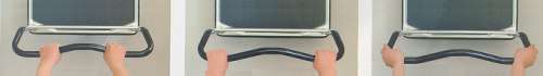 ■ハンドル革命 使い手の声を製品にという発想を大切にしながら、人間工学やユニバーサルデザインに基づく視点で使い慣れたハンドトラックのハンドルでエルゴノミックなフォルムを取り入れました。片手使用時から身体の大きさ、使い手による持ち方の「クセ」などを科学的にとらえ、研究してより多くの快適な持ち方ができるサイズに合わせた2タイプのハンドルを改良しました。