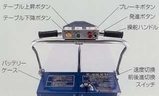 | ■特徴 ●電動車とリフターの機能を持つ1台2役のハンドリフト・トラックで、油圧及び走行系の2モーター構成でユニット化してあります。 ●テーブル上昇はこのクラスでは大容量の700Wのモーターを使用し、走行装置はダイレクト・ドライブ方式で容易に円滑な搬送業務が行えます。 ●電動走行装置を外したリフトのみ電動のタイプで、搬送距離の短いリフト作業に最適です。 ![]() ![]() ![]() ■MF3M-1000Lの特徴 ●大型操舵ハンドルを握ったまま、手元ボタンスイッチで走行、モーターブレーキ、テーブルの上昇と下降の操作ができ、安全・容易に運転できます。 ●油圧系統と走行装置を完全ユニット化した2モーター構成で、レス・メンテナンスです。 ●テーブル上昇は強力なDC24Vモーターと大型油圧シリンダーの組合せでスムーズです。 ●走行装置は高効率のダイレクトドライブ方式。 ![]() ■タイプ