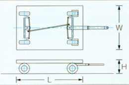 ●前後の車輪が切れるので、旋回半径が小さい。 ●多両連結でも、狭い通路の走行可能。 |