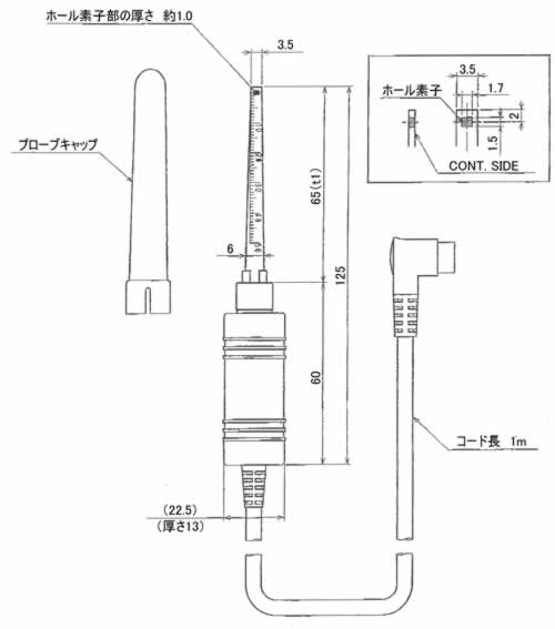 ![]() ガウスメーター 品番 MG10G-701 ■特長 ●デジタル・アナログ出力用端子付きです。 ●薄いプローブの採用で狭所の測定が可能です。 ●パソコンに専用ソフト(フリーウエア)で直接出力可能です。 ●わずか250gの小型軽量タイプです。 大きく見やすい液晶表示。 ●直流磁束密度に加え交流磁束密度の測定が可能です。(50/60Hz) ●ワンタッチでmT、G の表示切替が可能です。 ●0 〜3000mT (0 〜30000G)の広い測定レンジを有します。(直流) ●高分解能測定モードにより高精度な測定が可能です。(分解能0.01mT=0.1G) ●シートキーの採用により防塵性に優れています。 ●オートパワーオフ機能により無駄な電池の消耗を防ぎます。 ●面倒な校正なしで、プローブ交換が行えます。 ![]() ■アキシャルタイプ・プローブは対象物に垂直にプローブをあて測定します。