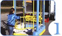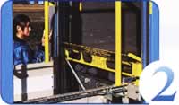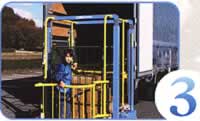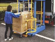 人も乗れるステージ付き。 1人作業で効率アップ。 ●1人作業 人が乗れるステージ付きで荷物と一緒に人も乗降できるので、すべての作業を1人で行なえます。 ●2人作業 トラック側と乗り込み側にペンダントスイッチが付いており2人で迅速に作業が行えます。 ●4t〜10t トラック対応 トラック側昇降範囲が850mm〜1500mmのため大型のトラックに対応しています。 ●200V電源 上昇・下降とも150mm/secで快適なスピードで効率良く積み降ろしができます。 |