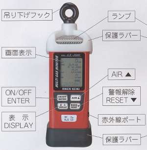 作用現場のガス測定・安全管理に! 移動ラクラク! 配線・据付工事不要! 1台5役 ・可燃性ガス ・酸素 ・硫化水素 ・一酸化炭素 ・温度 安全防爆構造・耐圧防爆構造 防爆等級 ExiadUBT3X <特長> ●5成分同時検知 ●防爆・簡易防爆構造 (連続12時間・間欠ma×240時間) ●360°から見やすい警報(ランプ・ブザー)表示 にて現場の異常を知らせます。 ●充電池内蔵・簡単充電 ●データロガ(最大180日分) |