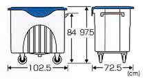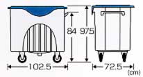 ■特長 ●大型ハンドル 移動操作がしやすい大型ハンドル付きです。(350L:幅40cm/550L:幅50cm) ![]() ●大型キャスター 凹凸の場合でも移動しやすい大型キャスター付きです。(径15cm) ![]() ●音の静かなキャスター 運転時の音が出にくいキャスターを使用しています。(350S、550S) ![]() ●水抜けしやすい傾斜 底面に傾斜がついており、水が排水口に流れやすくなっています。 ![]() ●掃除しやすい内部 内部は凹凸が少なく、お手入れしやすい形状です。 ●開口部 開口部の一部が低くなっているので、誰でもラクにゴミを出し入れできます。 ![]() ■仕様