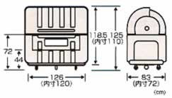 | ■特長 ●二重壁パネル構造。 ●排水口付き。 ●アイボルト付き ●カギ穴付き ●45gのポリ袋が17個入ります。 ■寸法図 ![]() ■開いた状態 ![]() ■仕様