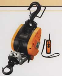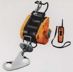 ●作業しやすい、コードレスリモコンを採用 ●遠隔操作(約30m)のできるリモコンタイプ ●ワイヤー径5㎜×21m付 ●最大吊上荷重:130㎏ ●過巻防止・加速防止・逆巻防止 ●ブレーキ付 |