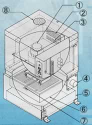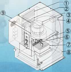 ■性能曲線 ![]() ●測定方法はJISに基づく。但し風量は使用状態により±5%の許容差があります。 ●性能曲線の静圧は全て機外圧で送風機静圧ではありません。(機外圧=送風機ー機内圧) ■構造図