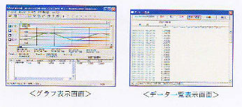 マニュアルでのデータ収集の他、毎日定時にまたは、一定時間間隔での自動収集ができます。収集されたデータは、自動的にファイル化されパソコンのハードディスクに保存されます。 |