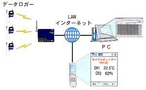 インターネット回線を利用することで、LANを越えて外部から計測・記録データを取得できるようになり、遠隔地の管理も容易且つローコストで実現できるようになります。