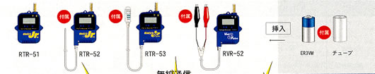 小型防水ワイヤレスデータロガー RTR-5xシリーズは計測・記録したデータを特定小電力無線によってワイヤレスでデータを送ることができます。 |