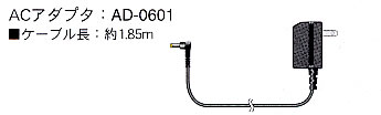 品番 RTR-05A1 品名 外部電源アダプタ 入力電圧:DC6V〜DC14V バックアップ電源:ニッケル水素蓄電池(停電時用) バックアップ時間:約4日※1 充電方式:トリクル充電 動作温度:0〜60℃ 防水性能:なし 質量:約37g(ACアダプタ以外) 内容:ACアダプタ 1個(AD-0601) 取付フック 1個 ゴムパッキン 1本(本体裏蓋用) シリカゲル(乾燥剤)1個 両面テープ1枚(シリカゲル固定用)