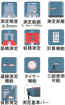土木建築、土地、住宅、林業、交通事故・・・・・など、あらゆる距離測定に使用しています。 耐衝撃性に優れる堅牢な、防滴・防塵ボディ 屋内・屋外をとわず測定でき、結果をデジタル表示します。 操作が簡単なキーボードと蛍光表示ディスプレイ 扱いやすい測定基準バーとレーザー光軸位置マークします。 タンク内部の液面までの距離もフローと板を浮かせることによって測定可能です。 |