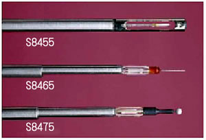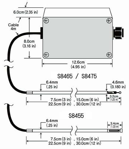 ●熱式センサを使って風速を測定します。 ●3種類のセンサは、正確な測定をするために幅広いダイナミックレンジにて柔軟に対応いたします。 ●出力形式と測定レンジの範囲を任意に選択可能。 ●S8455は保護金具付、S8465は保護金具無しの標準タイププローブで、速い反応性とともに高精度の測定が可能。 ●S8475は無指向性(球状)プローブで、変化する風向に関係なく低風速において高精度の測定が可能。 |