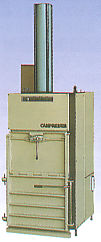 ○ジュース缶:220個 または一斗缶4個 ○プレス時間:45秒 ○毎時700㎏(スチール缶) ) ○加圧力:18トン サイズ(mm):W 760×D 800×H 2180 重量:670㎏ |
