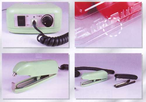 ●特長 機能抜群・・・幅広い材質に対応します。 手のひらサイズ・軽量化実現。 開口部が広く作業能率アップ。 ヘッド部形状がシンプルで見やすい。ポリ袋等薄物も可能。 安全・・・異物混入対策に万全。 超音波方式の為やけどの心配はございません。 経済的・・・金属針・テープ・輪ゴムなどの消耗品は不要です。 溶着時のみ通電。 |