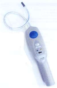 ●特徴 ・低コスト、ハンディ型フロンガスリークデテクタ ・センサーは”電気化学センサー” (加熱ダイオードセンサー)を仕様 ・バックグランドの変化による「ゼロ点調整」は自動的に補正 ・湿気のある雰囲気中でも的確にリークガスを検地 ●フレキシブル/約43cm (クロームメッキ) ●本器は、セラミック基盤に埋め込まれた反応電極と高温を保つ加熱電極を組み込んだ”電気化学センサー”を採用しています。この加熱された”電気化学センサー”表面にハロゲン系のガスが接触すると、塩素・フッ素・臭素等の原子は、化合物分子から分離し、イオン化し、セラミックの中に電流が流れ、中心の電極に収集されます。 |