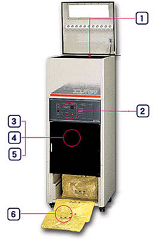 | ■特長 ●リサイクルで経費削減 今まで有償で処分していたオフィスや工場の紙くずを再利用するので、処分費用が不要になり、さらに緩衝材の購入、あるいは作成の経費も削減でき、大変経済的です。 ●前面パネルでワンタッチ操作 シュレッダーで細かくカットした紙くずを装置に入れ、簡単な操作でどなたにも容易にお使いいただけます。 ●人と地球にとってもやさしい 再利用することでゴミの量を抑えるとともに、パック(袋)には、燃やしても有毒ガスの発生しないポリエチレンフィルムを使用しているので安心です。 ●コンパクトだから設置もラクラク 場所をとらない設計のため、狭いスペースでも邪魔にならず、キャスター付きなので移動も楽におこなえます。 ●自動排出なので手軽で簡単 紙くずを装置いっぱいにセットした場合、最大約50個までの作成が可能です。 ■各部名称