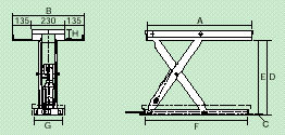 特長 ●ハット形テーブルに改造仕様にすれば、台車用段差昇降機として利用できます。 ●プラットホーム形に作られた荷受け場所での台車用の簡易リフトとして利用できます。(安全対策は別途打ち合せ) |
