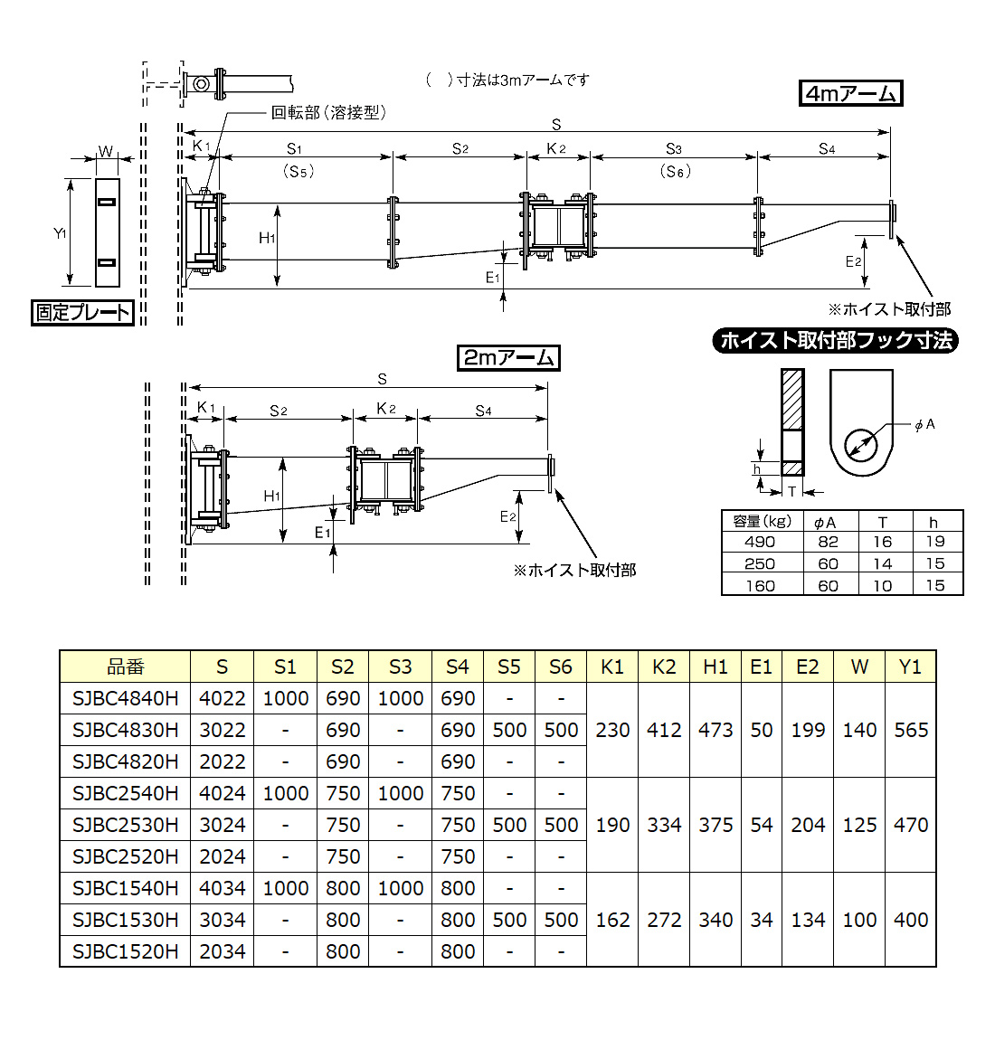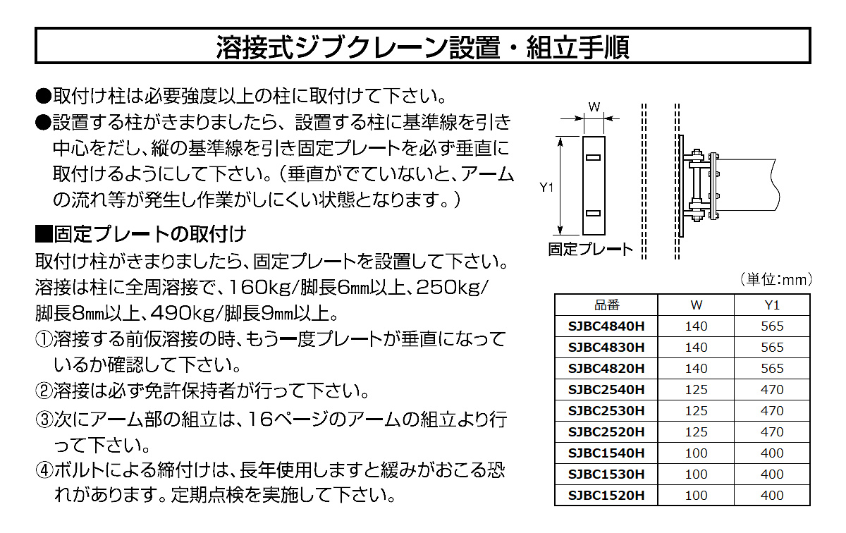 | ジブクレーン柱取付溶接型/品番 SJBC1520Hシリーズ |