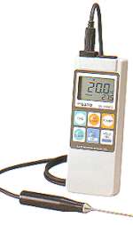 食品の調理温度管理や研究所・工場の製品管理施設等での温度管理に適しています。 サーミスタ・熱電対センサーの交換により、広範囲の温度を測定することができます。 測定値を記憶するメモリー機能で、最大150件(マニュアルモードの場合)を記憶することが出来ます。 プリンター出力 記憶したデータをプリンター(別売りオプション)でプリントアウトをすることができます。 保護等級4(防沫形)の防水仕様になっています。 サーミスタセンサー/熱電対センサー 一覧 |