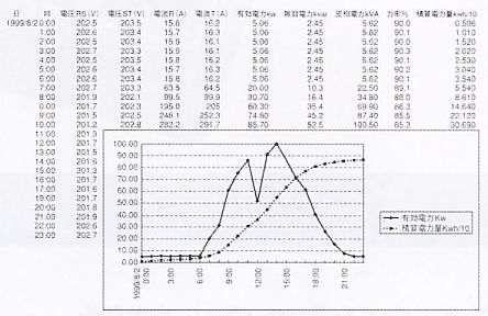 ![]() ■データ表示例(パソコン) 付属のオリジナル通信ソフトでグラフ・データ表に変換表示、プリントできます。 ![]() |