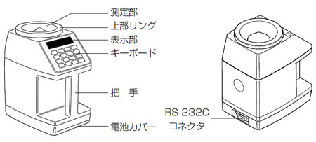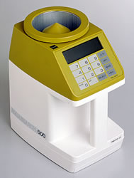 各種穀物や種子を試料カップから本体に投入するだけで、試料の高周波容量を検出し質量計によって質量補正を行い水分値に換算します。