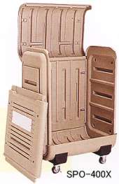 公共施設・ゴミ収集場・病院・旅館・ホテル・飲食店・会社等で広くご使用いただけます。 ●素材は超高分子量ポリエチレンを使用しておりますので、耐衝撃性・耐寒性に非常に優れております。 ●収集車積込時、収納袋を簡単に取り出せる様、前面パネルが取外し出来ます。 ●本体は、二重構造になっており、大変丈夫です。 |