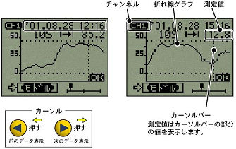 データが2チャンネルある場合は、ジョグダイヤルのスイッチを1.5秒間押すことで、チャンネルを切替て表示できます。 |