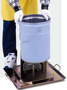 | <特長> ●ペール缶はテーパー缶とストレート缶に使用できます。 ●カットの位置が簡単です。 ●ナイフや包丁のような危険な刃がなく、研磨が不要です。 ●カッターは特殊鋼を熱処理した耐摩耗仕上げです。 ●使用後は完全防御で安全に保管ができます。 <注意点> ●樹脂製のペール缶には使用できません。 ●変形したペール缶には使用できません。 ●残留物が硬化したペール缶には使用できません。 ■使用手順 手袋と滑らない靴を着用して必ず「天ぶた」を取り除いた鋼製ペール缶にご使用ください。 ペール缶手前をカッター幅に持ってベース板を踏んでご使用ください。(下図参考) 残留液には受け皿をご使用ください。 ![]() ①ペール間の胴下を正しくガイドにあて缶底を刃先に当てます。 ②「カチッ」ととまるまでガイドに沿ってペール缶を真下に押し込んでください。(押し込みが不足の場合はペール缶の引き抜きが重くなります。) ③ペール缶を引き抜いて目測で次のカット①②を繰り返します。 ④切り離した缶底はペール缶の中に入れます。また、少し切り残した缶底はペール缶の中に折り曲げ横にして踏みます。 ![]() ■受け皿 ![]() ■仕様