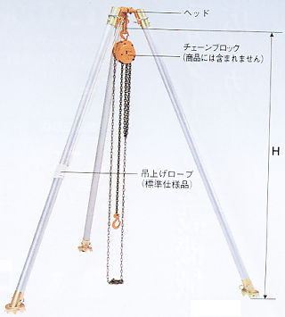 | あらゆる重量物の吊り上げ、吊り降ろしに最適の軽量三脚。 | ||||||||||||||||||||||||||||||||