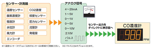 ※ご注文時には「入力タイプ」「表示上限値/下限値」「表示更新時間」「タイトル文字」の情報が必要です。