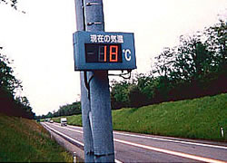 ●温度、風力、発電、騒音、水位など、センサー・計測器のアナログ信号をデジタルに変換し、超高輝度LED使用で視覚性抜群の大型デジタル表示板に表示します。