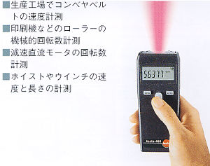 測定対象の状況に応じて光学的計測/機械的計測を使い分けられます。 光学的および機械的方法で回転計を計測する理想的な計器です。光学的測定ではリフレクターを対象物に取り付け、可視の赤変調光ビームをリフレクターに当てて計測します。機械的計測に切り替えるときはアダプタとコーンまたは回転ホイールを取り付けるだけですみます。 ●光学的および機械的計測。 ●回転数、速度および長さを計測します。 ●計測タイプの切換は簡単です。 ●ユーザーフレンドリー ●Max/Min値、最終計測値(自動オフ時メモリされます)。 ●大型LCDディスプレイ ●「電池切れ」警告 |