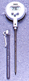 食品現場の油や水しぶきの環境での使用に耐える防滴型の温度計です。