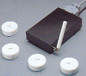 超小型ワイヤレス温度計です。手の届かない場所での温度測定に最適です。 センサ・送信機は直径28mm、厚さ約15mm、質量20gと軽くて超小型です。 受信機1台で、センサ・送信機10台の管理が可能で、発信器と受信機間は約10mまで離せます。