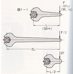 トルク=力×長さ(T=F×L)=2F×L/2=F/2×2L