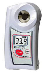 | ■特長 Brixは低糖度から高糖度まで1台で測定できる0.0〜85.0%のワイドレンジです。 果物の糖度測定、ジャム・シロップの煮詰め具合の確認、加糖量を決める際の確認など様々な活用が出来ます。 高温対応、温度補正機能付、丸洗い可能な防水仕様です。 機器全体、丸洗いできるので衛生面も安心! ![]() ■測定方法