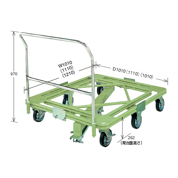 | ■特長 ●自在移動回転台車 台車(移動機能)とターンテーブル(回転機能)の1台2役を実現(昇降センターベース付き仕様) ![]() ●オプション取っ手 取っ手なしのタイプに後付けで取付可能 ![]() ■タイプ ( )内の寸法はパレット適合サイズ1100×1100mmタイプ < >内の寸法はパレット適合サイズ1200×1000mmタイプ