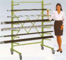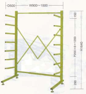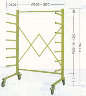 均等耐荷重(1アーム当たり)25kg ●取扱が煩わしい長尺物の保管に最適。 ●保管物の長さに合わせて、ワイド調整が可能。 ●不用時は折りたたんで収納できる。 |
