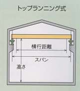 走行レール上面にクレーンが載りますので、高さ(吊しろ)が必要な作業に適しています。 | 中古ニッチ電動サドルトップラン型2TON 問合せ番号 Z-0291-5 品番 E040208 |