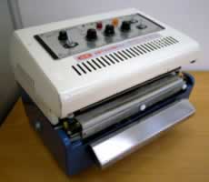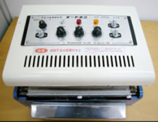 ヒートシールタイプ ■用途 ラミネートフィルム各種 ■仕様 熱板/長250m/m×巾20m/m・ 長300m/m×巾20m/m 電熱/100V-200W×2 温度調整/電子温調器0〜300°±3° 歯形/標準アミ目ヨコ目 床面積/300×250×250m/mH 重量/20kg |