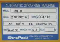 | 中古自動梱包機/品番 RQ-8 問合せ番号Z-0310-7 |