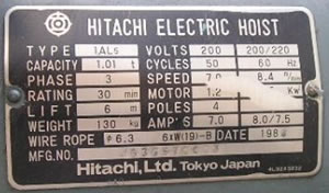 | 中古日立ローヘッド形ホイスト/ 品番1t(1AL-T55) 問い合わせ番号 Z-0311-4 |