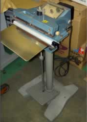 粉末や液体を袋からもらさずシーリング可能 ●簡単な操作 軽い足踏み操作で美しく丈夫なシールが行えます。 タイマーで加熱時間を設定し、袋をシール部にセットします。(タイマーの加熱時間は包材の種類・厚みなどにより異なります。)後はペダルを踏むだけでシールができあがります。 ●過熱防止対策タイマー ヒーター過熱が万一発生した場合、(加熱開始後約4秒経過しても加熱が終了しない場合)自動的に電源スイッチがオフ状態になり、ヒーターの加熱を停止します。 |
