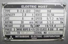 中古三菱ローヘッドホイスト/品番 R-2.8-LD2