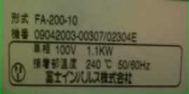 | 中古富士インパルスシーラー/品番 FA-200-10 問い合わせ番号 Z-0363-4 |