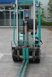 | ■特長 ●走行スピード:9.5km/h、リフトスピード:300o/s、登坂能力:12度 ●安心して使える親切表示 操作に支障ないことが一目でわかる緑のオペレーションランプと、充電時期を知らせる赤のバッテリー残量警告ランプを 標準装備。緑はOK、赤はちょっと待てのサインで安心して作業できます。 ●初心者でも安心の安全設計 キースイッチを入れたとたんの急発進を防止するニュートラルセーフティー機能、電源を切った状態で誤ってティルトレバー に触れてもマストが動かないティルトロック機能など、初心者でも安心して操作できる安全設計です。 ●押すだけの非常電源解除ボタン 万一の時は、非常電源解除ボタンをポンと押すだけ。 全ての電源が解除され、危険を未然に防ぎます。 ●どこでも使える静かな操作音 普通の会話を邪魔しない驚異の低騒音。どこでも気がねなく作業できます。 ●場所をとらないコンパクトフォーク クラス最小のボディ。フォークのツメ部分を運転席側に起こせば、さらにコンパクト。 エレベーターにも載せることができます。 ●充電は100V家庭用電源でOK。車載式充電器を装備していますので、充電器も不要です。 ●狭い場所でもクルッと旋回 最小旋回1200oという小回りのよさ。狭い場所でも旋回、方向転換が容易です。またタイヤ間隔を広くとった4輪式です から安定性も抜群。走行時のゆれも少なくなっています。 ●簡単操作でスムーズ走行 走行コントローラーにトランジスタチョッパを採用。 低速から高速までなめらかに走行でき、前後進の切換えもスムーズです。 ![]() |