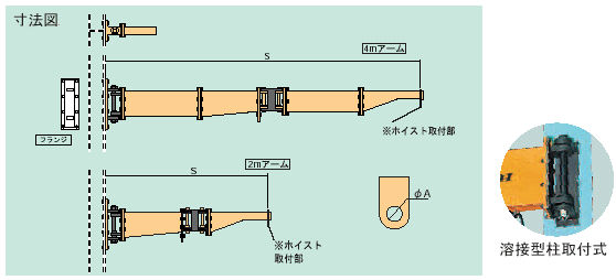 ●建屋等の柱に固定プレートを溶接取付けすることにより、いつでも組立・分解ができます。 ●規定強度以上の柱であれば取付け高さを自由に設定できます。 ●取り付け溶接用ベースは新品部品付いています。 ●全長は約2.6mです。 ●写真の通り3段となっています。