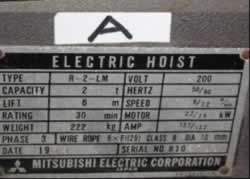 | 中古三菱R形ホイスト実用型/品番 R-2-LM 問合せ番号 Z-0380-1 |