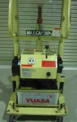 ・前方が見やすい透明な安全カバーが取付けてあり作業者の安全を守ります。 ・バッテリーは自動車用12Vを使用し、充電器は入力AC100V用が付いています。(別置式) ・バッテリーの充電時期は、バッテリーチェッカーが知らせます。 ・バッテリーの充電は充電器のプラグを接続するだけです。 当社商品専用バッテリー充電器(別置式) (特殊仕様は別途打合せ) 入力電源・AC100V50/60Hz/出力・DC12V8A ・入力電源と充電用プラグを接続し、電源スイッチを入れるだけで自動充電します。 ・内蔵のダブルタイマーにより、充電時間を制御しバッテリーの過充電を防止します。 ・充電中、バッテリーの電圧が14.6V(約90%充電)になると、補充電タイマーが作動し、5時間後に自動的に充電を停止 します。また、バッテリーが 劣化して充電を行っても14.6Vまで電圧が上がらない場合は、充電開始に作動する15時 間タイマーにより、最大15時間後には自動的に充電が停止します。 <注意> 1.1ヶ月以上ご使用にならない場合は必ずマイナス側のバッテリーターミナルを外して下さい。 バッテリーの放電が少なくなり長持ちします。 2.充電する前にバッテリー液を必ず点検して下さい。液面が低下し極板が露出していると大変危険です。 ![]() ![]() |